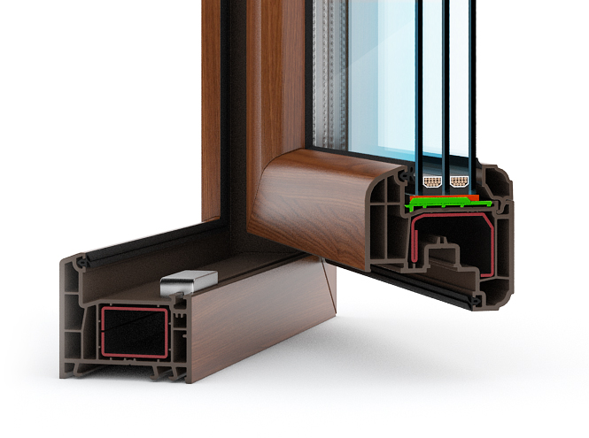• Профиль - Rehau Thermo(двусторонняя ламинация орех)